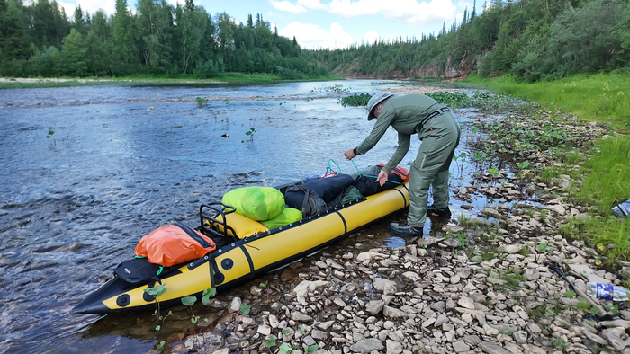 Надули второй пакрафт — сегодня я иду самостоятельно и впервые встречусь с порогами. Волнительно.