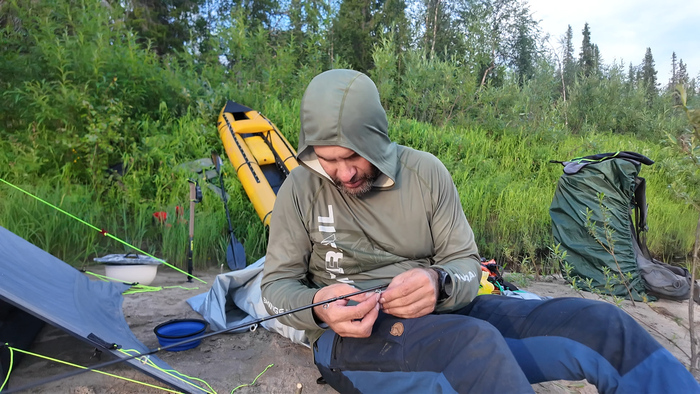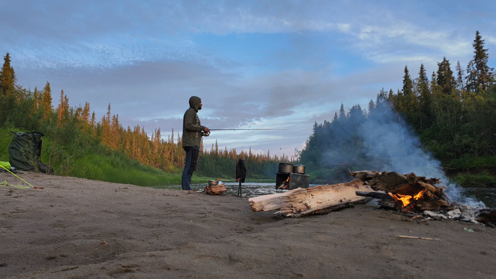 Вечерами комары лютуют, поэтому быстро поставили палатку и спрятали в ней Марса, а сами весь вечер провели за хозяйственными делами: поиск дров, рыбалка, приготовление ужина и заготовка рыбы на завтрашний день. Умотались сегодня прилично.