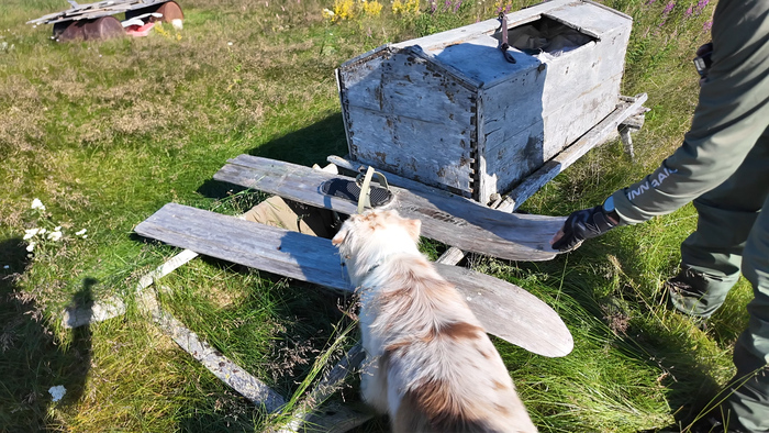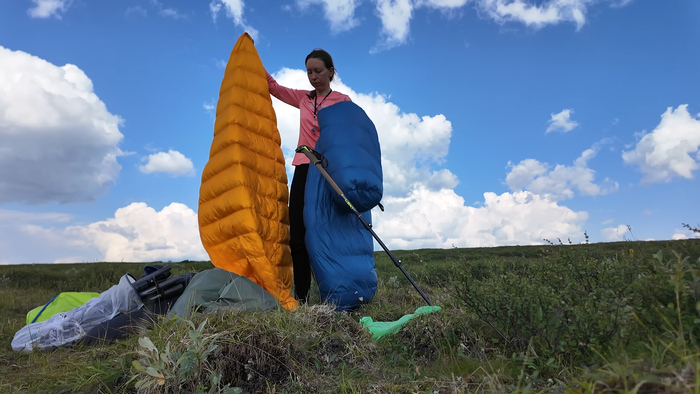 Тарас за добычей, а я за стирку ходовой одежды, просушку спальников и вычёсывание Марса.