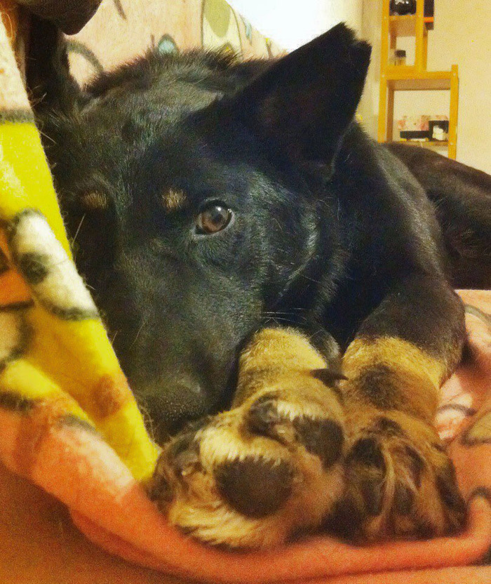 От этого всего и от жизни приютский сон у Чучи не спокойный. Но бегаем от кого-то, то лаем. То ещё что. А какие рожи Чуча корчит, когда надо мыть лапы.