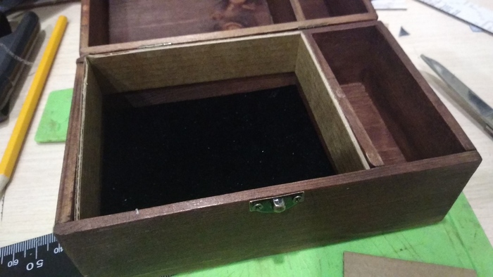 Запилил вместительный декбокс для ККИ Magic The Gathering в декбокс входят 2 или 3 деки, можно и одну, но сильно большую - много места остается. Если 2 деки, то бокс для кубиков тоже можно положить внутрь, если 3 то отдельно. Крышка бокса для кубов на магнитиках, сам декбокс на крючках.
