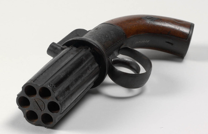 Nock Gun - семиствольное гладкоствольное залповое ружьё с крёмневым замком, легендарным оружием Дикого Запада не является и иногда ошибочно может быть отнесен к этой эпохе благодаря образу появившемуся в фильме "Аламо" и далее в ряде популярных вестернов. Тем не менее я решил включить его в список из за его необычности и эпатажности, заодно осветив тот факт, что это оружие к Дикому западу имеет весьма опосредованное отношение.