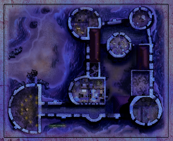 Карта ДнД . Клад Королевы Драконов. Замок Неритар и окрестности. 1и 2 этаж 19х16 (без окрестностей) 31х21- с окрестностями