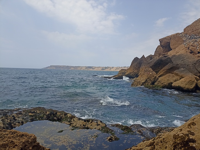 Когда шел к месту уже представлял, что сегодня точно рыба будет, была какая-то внутренняя уверенность, но спустившись к вчерашнему камню, увидел, что волна бьет сильно и в таком водовороте рыба точно плавать не будет. Когда спускался, ко мне подошел мальчишка лет 12, заговорил на арабском, потом на ломаном английском попросил, чтоб я отдал ему удочку. Я от такой наглости просто рассмеялся.