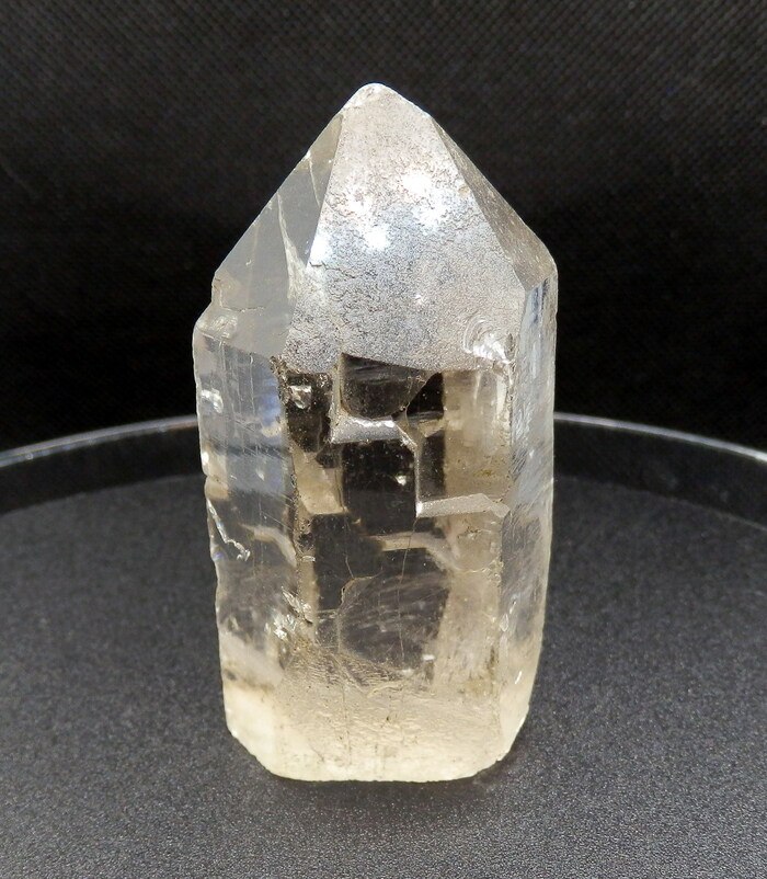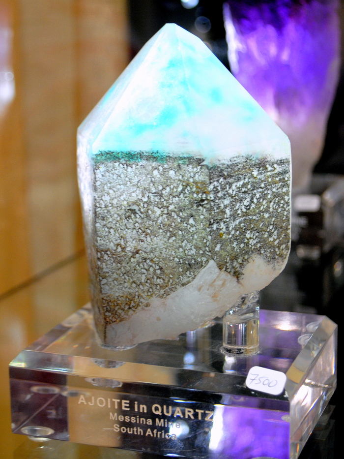 Секториальное расположение газово-жидких включений в изделии, изготовленном из поперечного среза кристалла кварца. Ювелирно-минералогическая выставка "Мир Камня". Фото автора