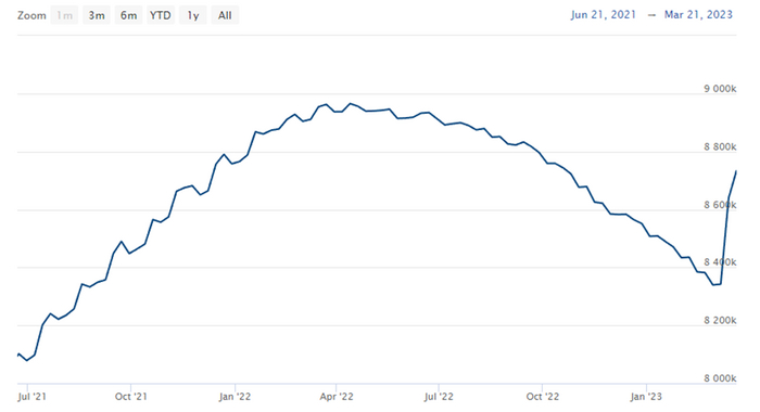 SBER SBERP VTBR TCS TCSG Кредитный бум в России. В марте 2023 прирост кредитования в пользу физичес (tinkoff.ru)