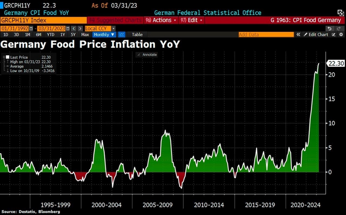 Цены на продукты питания в Германии обновили многолетние максимумы.