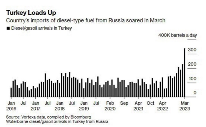 Bloomberg также отмечает, что морской импорт нефти по Чёрному морю сохранился только в Болгарию. За последние четыре недели он упал до 83 тыс. баррелей в сутки, что стало минимумом с апреля 2022 года. В Средиземном море Турция по-прежнему осталась единственной страной, которая закупает российскую нефть.