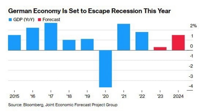 Прогнозисты больше не предсказывают, что крупнейшая экономика Европы сократится в этом году, вместо этого она пытается избежать лёгкой рецессии, из которой, скорее всего, выйдет уже весной.