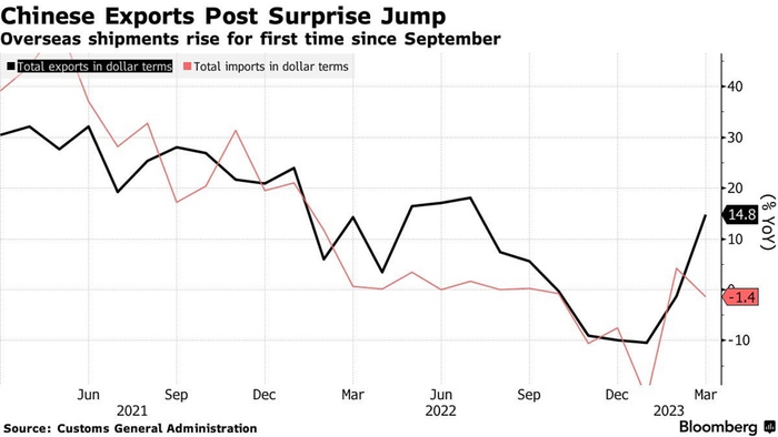 Китайский экспорт в январе-феврале составил $506.3 млрд, упав на 6.8% г/г, но это всё же лучше декабрьского падения на 9.9% г/г.