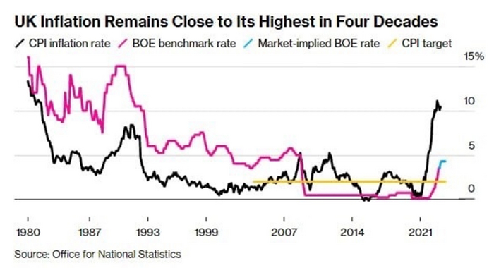 Уровень инфляции в марте оставался на упрямом двузначном уровне, что стало еще одним неожиданно сильным показателем, который укрепит аргументы в пользу дальнейшего повышения процентных ставок Банком Англии.