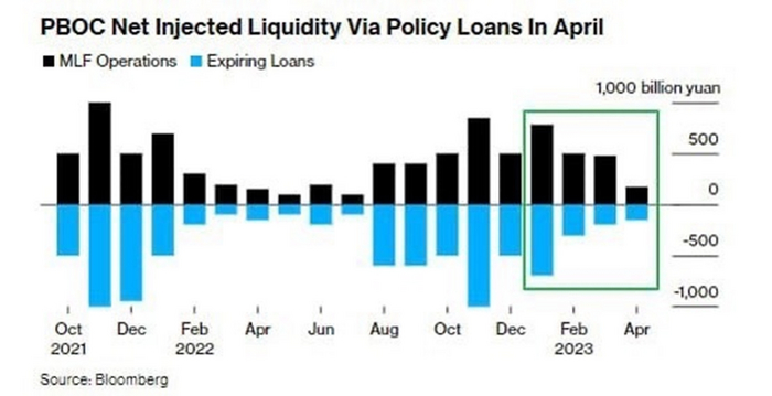 Рост производства Китай поддерживает за счет вливаний ликвидности в экономику – льет больше, чем изымает, используя операции MLF.
