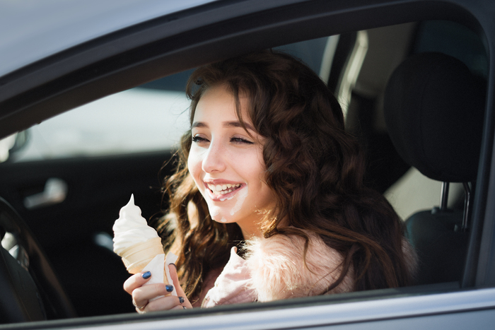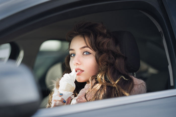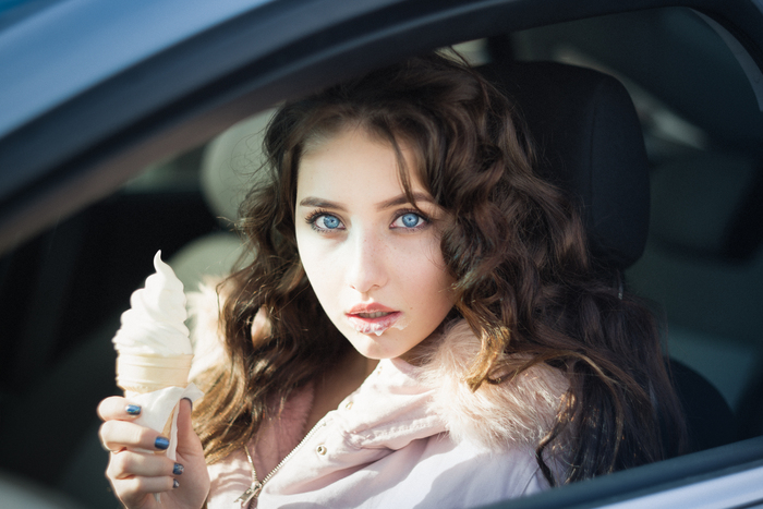 В тот февраль 2019-го солнце выглядывало довольно часто. Созвонились, камера в сумку, поехали. Идея появилась быстро - заехали в МакДоналдс, купили мороженое, и прямо в машине - несколько кадров.
