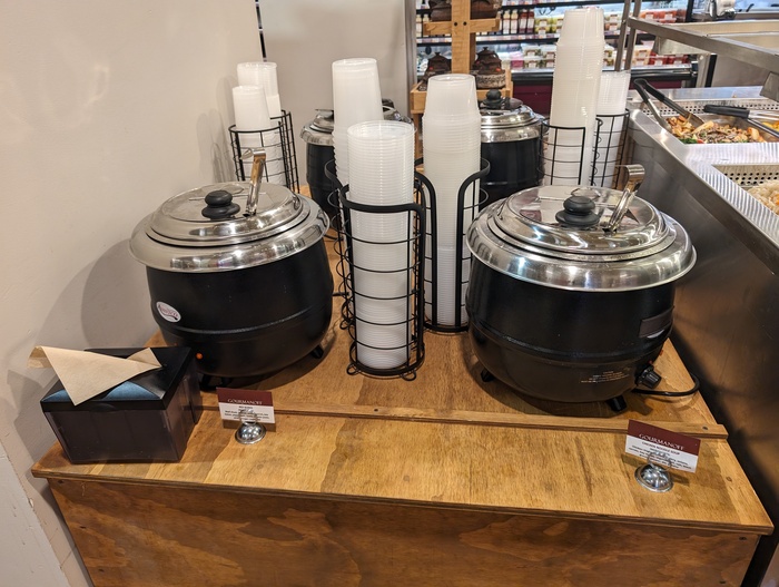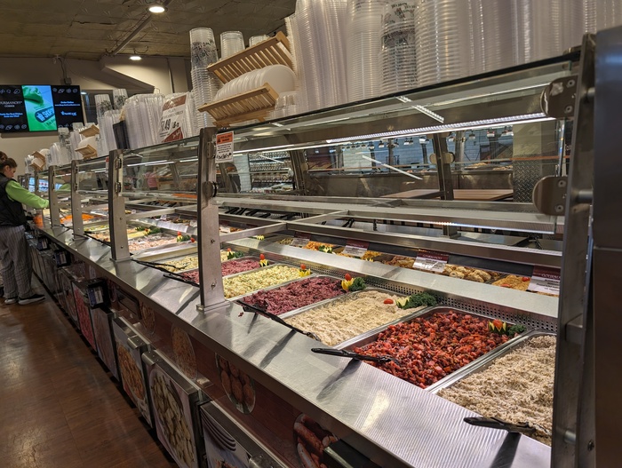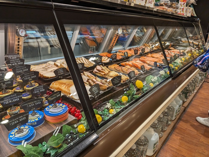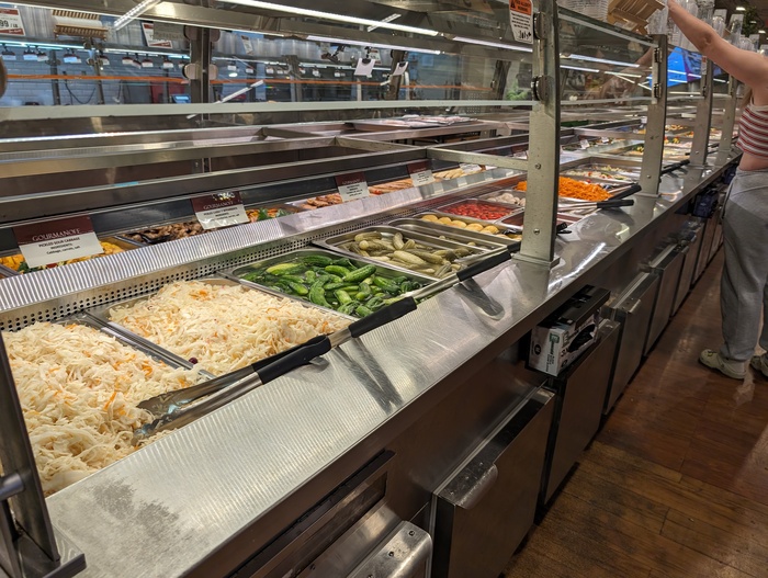 По поводу продуктов - как и в Костко, выбор в магазине маленький, но все товары отборные. В секции овощей есть отдельный стеллаж с салатными основами и порезанными овощами, стеллаж орехов-сухофруктов, про цветы я уже писал. Я подсел тут на японскую приправу, из кунжута и порезанных листиков Нори. Плюс это единственное место в округе где можно купить сыр Cambozola, а перед новым годом завозят Tete de Moine - офигенная штука!