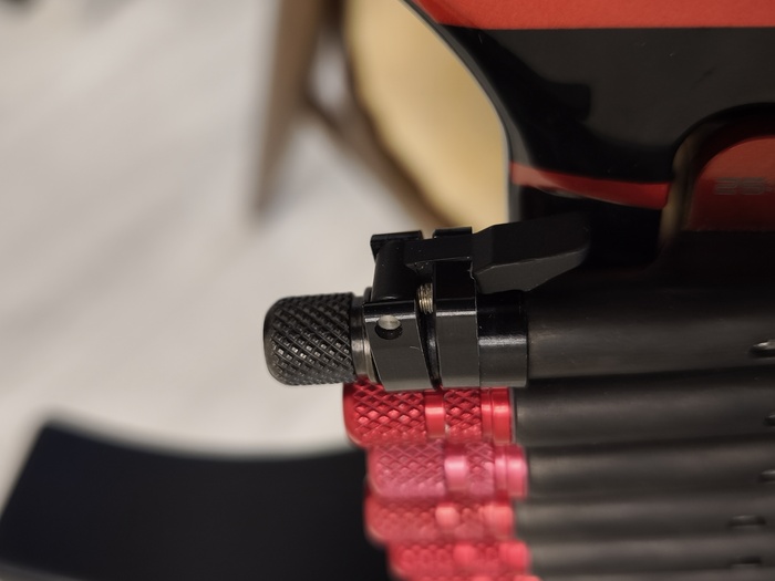 Очень понравился цвет ручки, и то, что она накручивается, а не вставляется, как в обычном Floyd Rose. Конструкция тоже выглядит интересно с учётом того, что колечко не обязательно со струны отрезать, а саму струну можно заправлять с любой стороны и выбирать, будет ли она прижата винтом или на кольце.