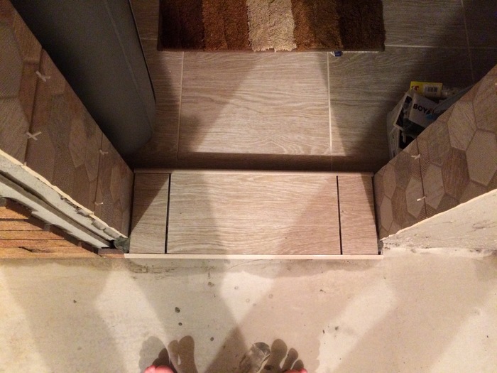 Столик занял свое место в углу где плитка клинкерная. Там же полочка. Добавлю фото в комментах.