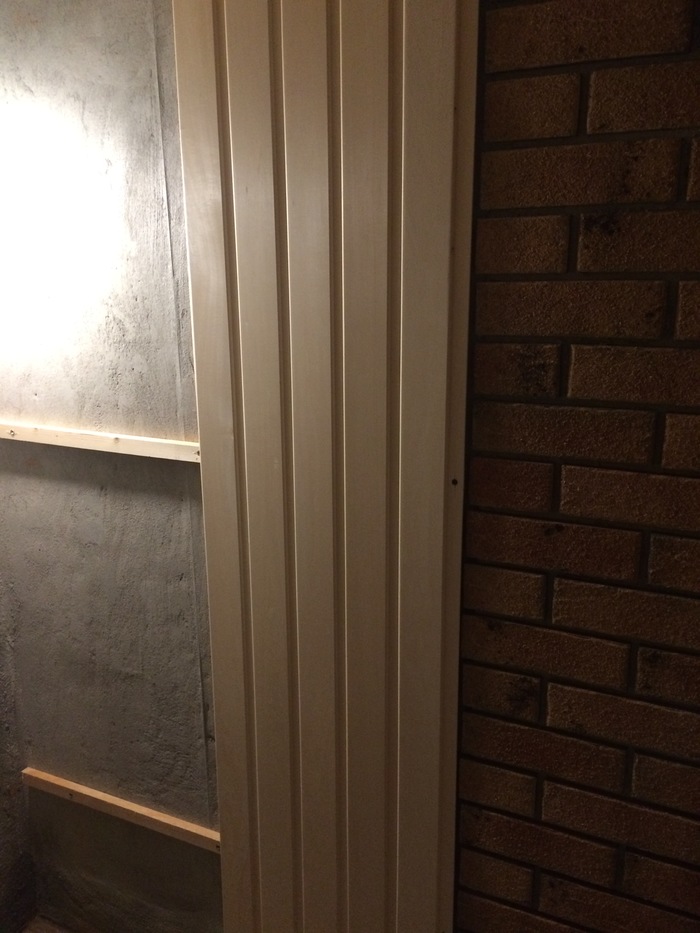 Фото с пола) Так как открывать дверь не куда, сделал свижную. Купил дверь створку как жалюзи, это позволит комнате проветриваться, она легкая. Направляющая алюминивеая и ролики. Вообщем все дешево. Краски правда я использую профессиональные итальянские.