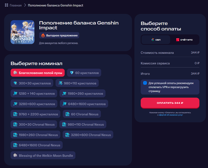 Витрина МТС Оплата даёт возможность пополнять популярные азиатские игры вроде Genshin Impact, Honkai: Star Rail, Zenless Zone Zero и других прямо по игровому идентификатору.