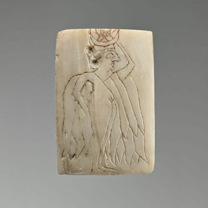Иллюстрация 2. Богиня Иштар, украшение для мебели | Ближний Восток, Сирия, городище Мари, храм Иштар, южное крыло, сектор а24 | Раннединастический период IIIB, 2500-2340 годы до нашей эры | Музей Лувра, Франция, АО 18962; М. 1027