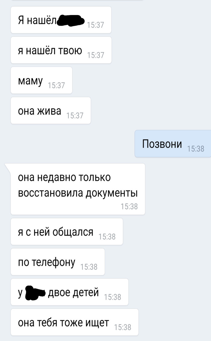 Пока я сидела, мои мысли прервал какой-то звук, звук моего имени. Школьный знакомый, когда-то бывший почти другом , увидел меня сидящей с опущенной головой. Знаете, когда меня били, я не плакала. А тут разревелась. Жалость в глазах может разрушить любой барьер.