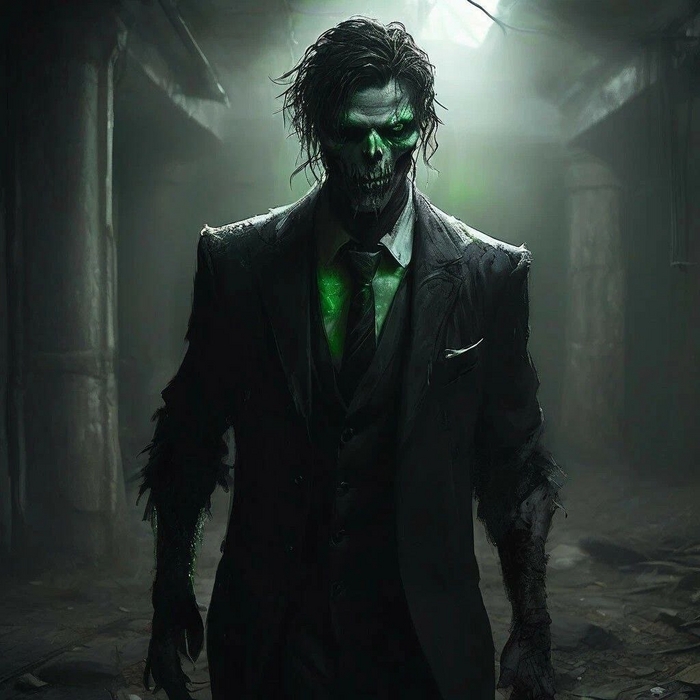 Там стояла мужская фигура в рваном смокинге, окутанная тенью. Его глаза горели недобрым зелёным светом. Он протянул ко мне руку, и я почувствовал ледяную хватку в районе своего сердца.