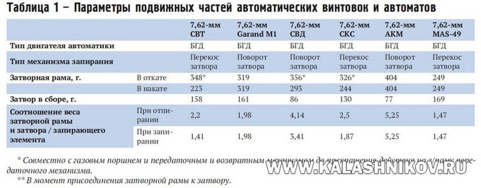 В кругах любителей «срывания покровов» существует устойчивее мнение, что высочайшая надёжность механизма запирания АК является исключительно следствием его заимствования из конструкции американской самозарядной винтовки М1 Garand (подспудно проводится мысль о том, что если что-то у нас в стране и придумано хорошее, то его точно «утащили из-за бугра»). Те, кто так считают, невнимательно изучали устройство американской винтовки или вообще её не видели.