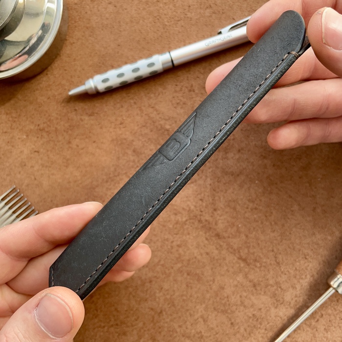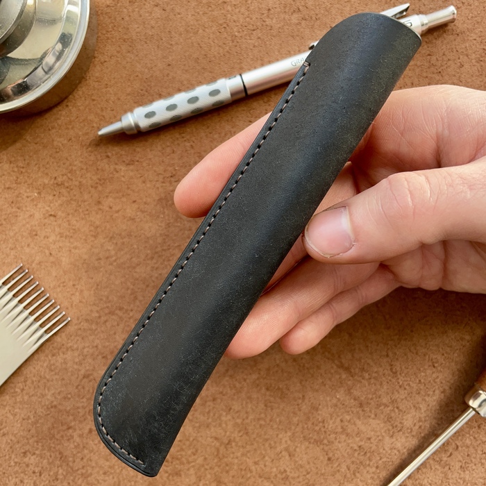 Хоть кожа и чёрная, на урезах она сероватая, хорошо у меня был чёрный токоноле, который только для черных изделий и по подходит🙃 (на любых других цветах, легко зайти за края волной)