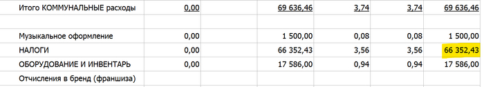 Так мало получилось из-за того, что было много дополнительных трат: покупка новой вывески (41 тыс.), мобильный кондиционер на кухню (11 тыс.), новое кухонное оборудование (7 тыс.) и главное заплатил налоги за прошлый год на 111 тыс. рублей.