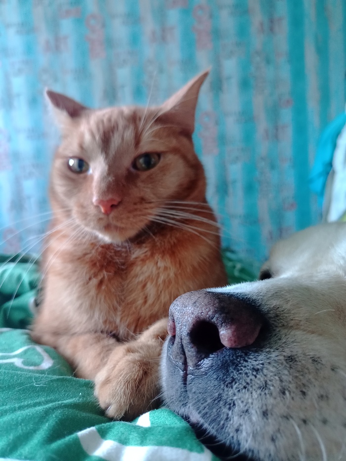 У остальных котов забастовка: почему паучи не мне? Ося и вовсе прорывается ко всей (кошачьей, собачьей, человеческой) еде уверенными движениями уличного кота. С холодильника орут вразнобой Рысь и Мисси, пока не получат свою миску. Подсаженный к ним поесть Ося убегает: он точно знает, что у соседа еда вкуснее! Тося при виде пауча становится фурией, забывая, что она вечно спящая горжетка: паучи её страсть. К общей миске она не хочет: там же занято, а она ест максимум вдвоём! И только собака ВСЕГДА смотрит голодным взглядом, голову наклоня, ибо лабрадор.