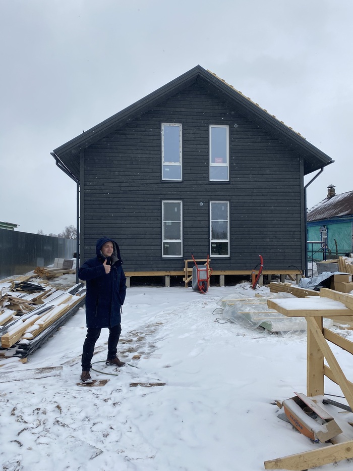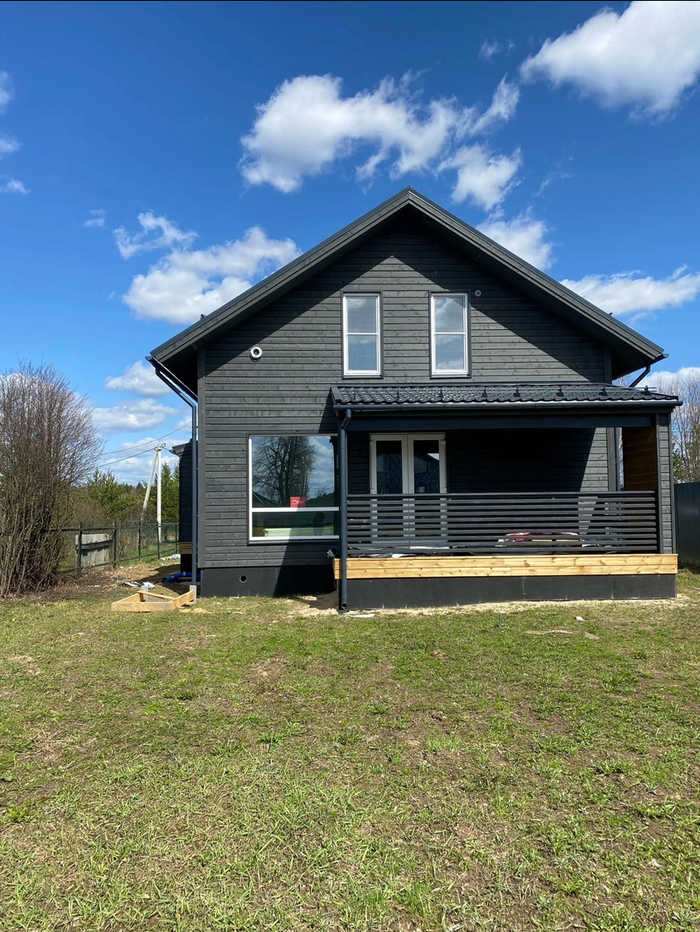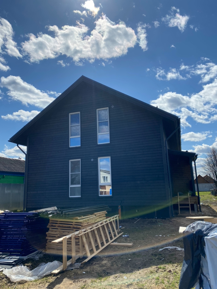 02.04.22 дом был полностью готов, оставался цоколь и повторная покраска( первая была на заводе).