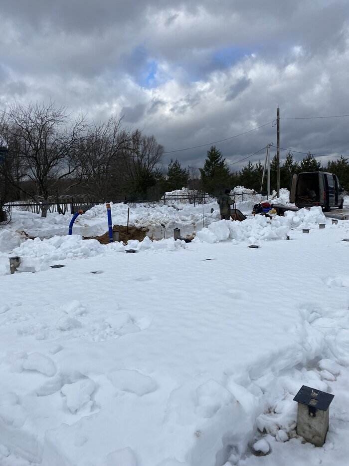 Самая подстава нас ждала в ноябре. Выпало много много снега, а по договору мы обязаны подготовить место под строительство самостоятельно. Т.е. весь снег нужно вычистить и сохранить так до момента приезда рабочих.