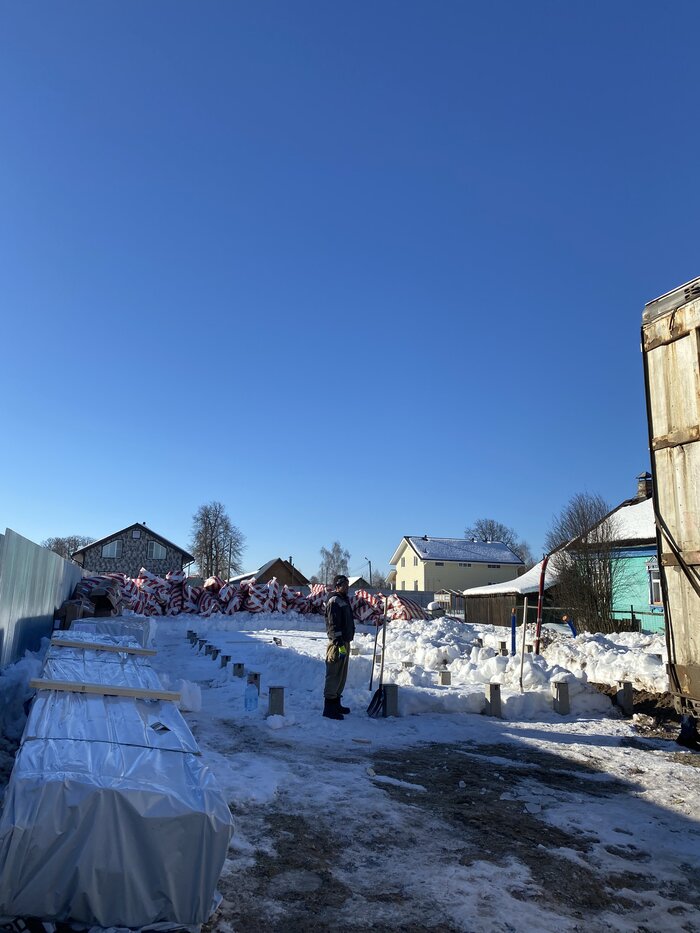 Так же нас предупредили, что дом комплект приедет на длинномере и ему нужно обеспечить проезд. А это та еще задачка. Наш участок в конце улицы, а это значит что нужно чтобы по всей улице проехал трактор. А еще в начале улицы поворот в 90 градусов, который должен быть идеально вычищен.