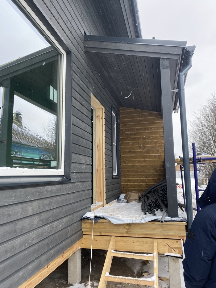 Оставался пол у террасы и крыльца. И по мелочи, дверь, например.