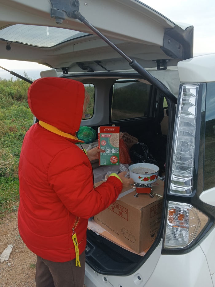 Ночью было холодно, от этого и проснулись. Запустил двигатель. Теплый воздух снял напряжение в теле и мы снова провалились в сон. Дремали до четырех утра. Потом подъем, умылись, переложили вещи и в 4.20 тронулись в путь. Температура+3