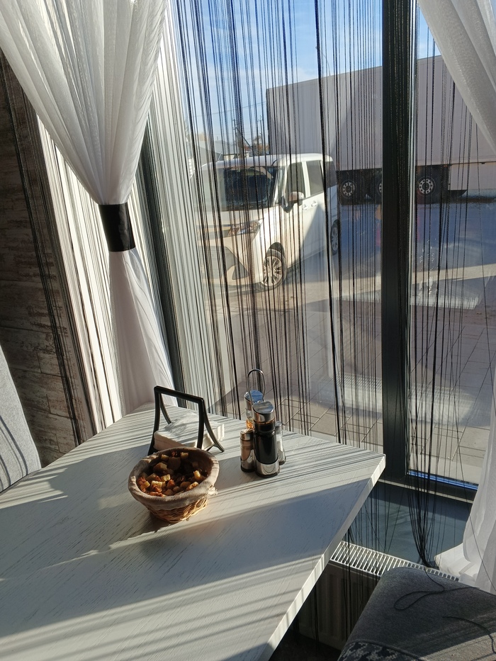 Вот уже совсем рассвело, можно бы и позавтракать. Ищем куда бы заехать, но как назло, куда ни подведем, либо еще закрыто, либо не работает. Уже подыскивали площадку, чтобы самим что нибудь приготовить. Увидели слева , вдалеке от дороги, что-то похожее на стоянку дальнобоев. Свернули на удачу, стоит пара фур и кафе, открыто!