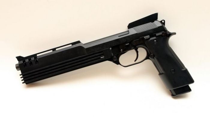 Ещё одним важным атрибутом внешнего вида Робокопа является его пушка, а именно пистолет Auto-9 с обоймой в 50 патронов. Изначально планировали просто всучить герою Desert Eagle и не париться. Однако на деле вроде бы солидное оружие выглядело попросту мелковато в руках огромного киборга. Так что в итоге оружейники пришли к выводу, что надо взять Beretta 93R, благо она стреляет очередями по три патрона. Визуально же пистолет значительно доработали вручную, прибавив удлинённый ствол, новую рукоять и прицел.