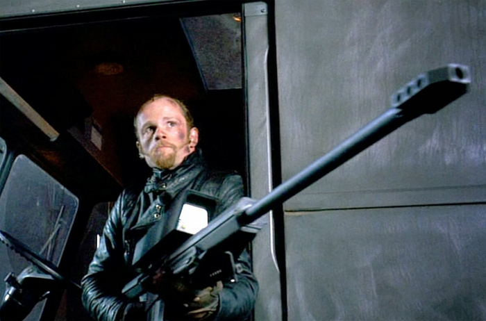 Кстати, похожим образом обошлись со штурмовым орудием «Кобра», которое бандиты использовали против Робокопа. Его “сыграла” тщательно загримированная винтовка Barrett M82.