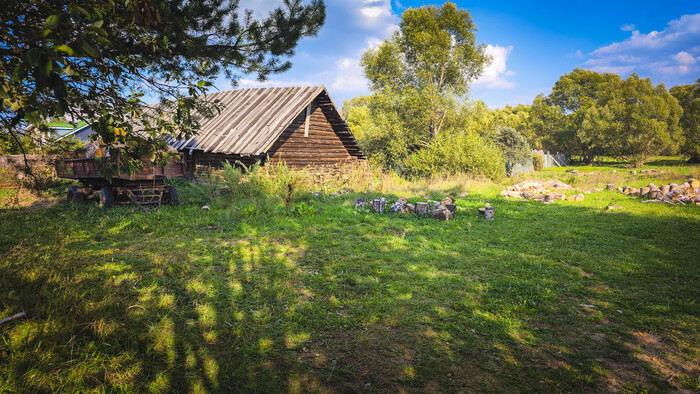 На часах уже вечер, поэтому нужно начинать немного спешить. Первым делом мне нужно закупить воды и еды на вечер и утро, поэтому, проехав около 5км по СНТ и лесной бетонной дороге, я заруливаю в поселок. Я здесь минут 30, но уже начинаю чувствовать, что время здесь течет несколько иначе.