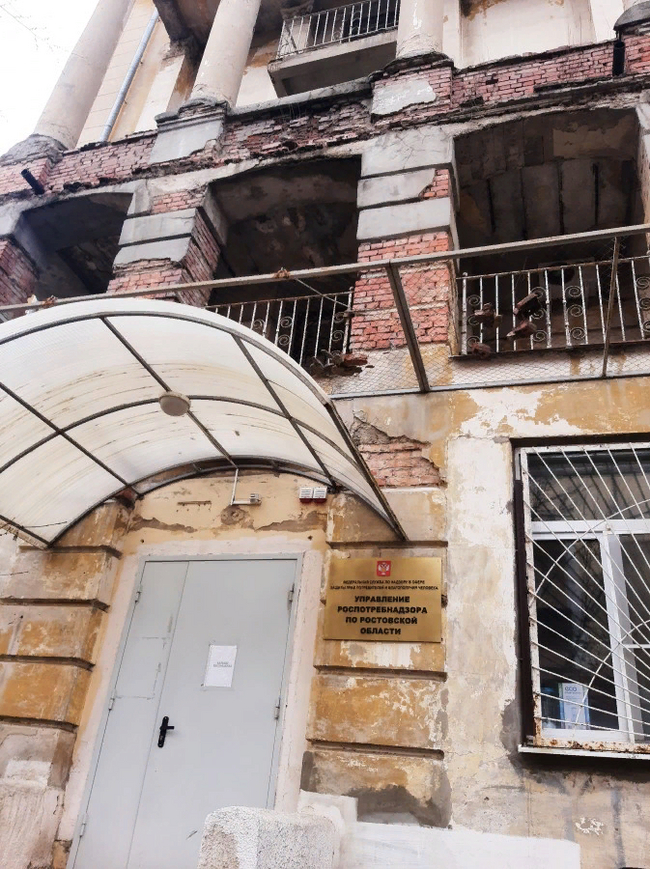 Вот так уже долго, и по сей день, выглядит Северо-Кавказское Управление Ростехнадзора в Ростове-на-Дону. Для объективности – фасад норме, а вот боковая и задняя часть, как раз около входа в канцелярию и экзаменационный класс – это просто опасно в безопасном : )) Управление, в котором со всей Ростовской области, все производственники проходят обучение промышленной безопасности и сдают экзамены.
