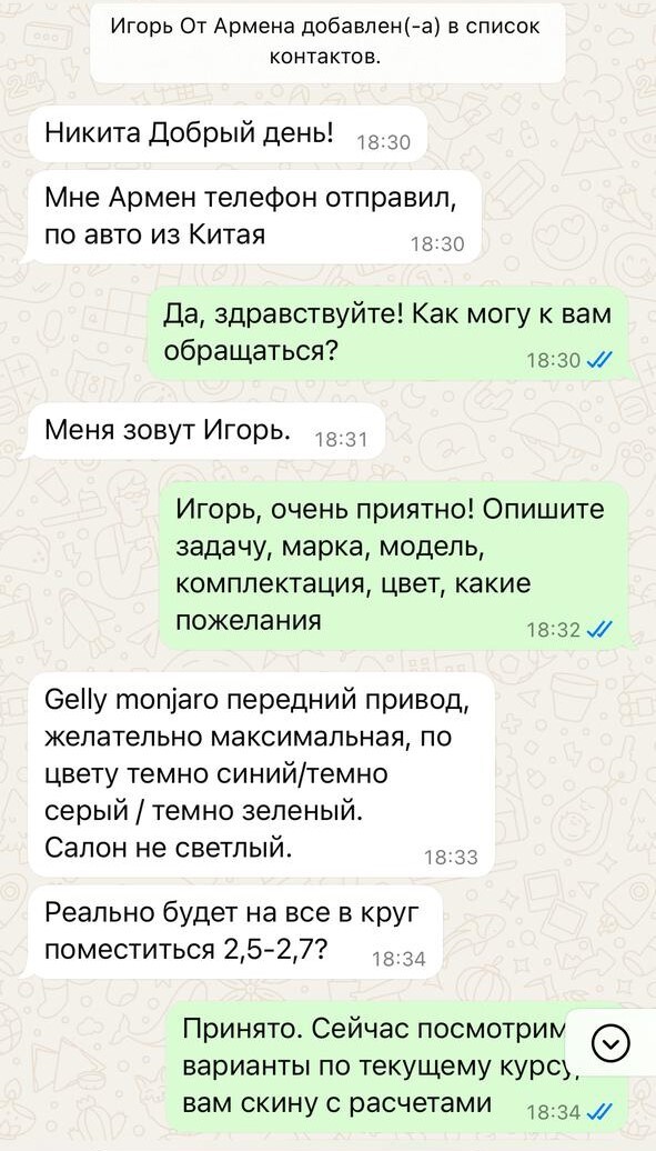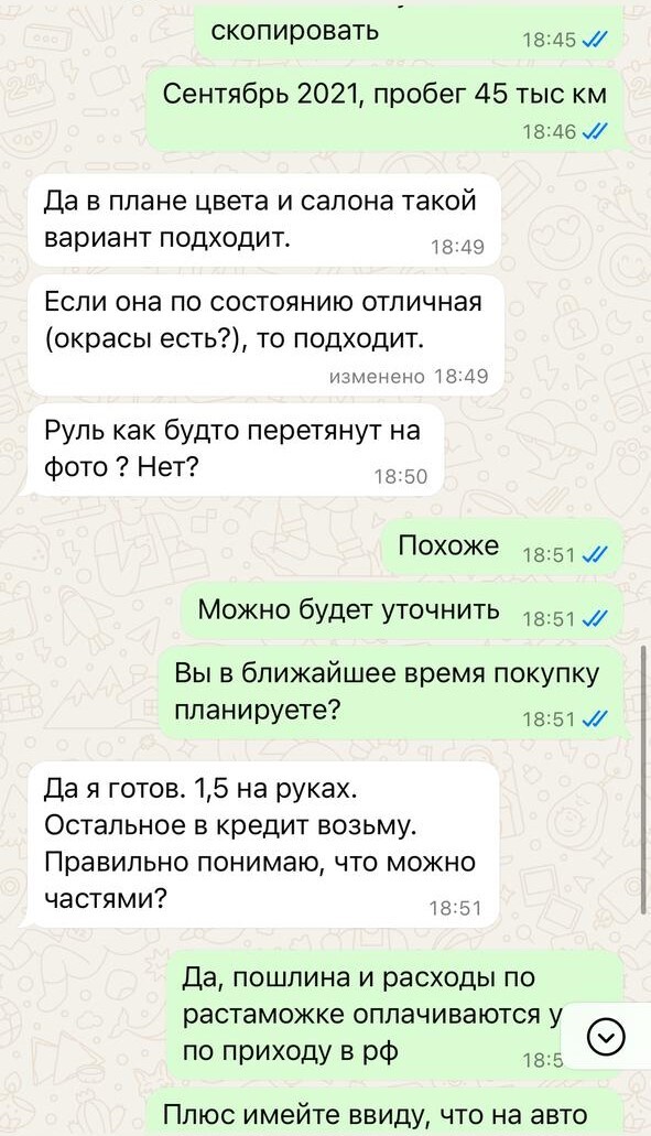 Начало стандартное – узнали желаемый цвет, пробег, комплектацию и все, что требовалось для подбора автомобиля.