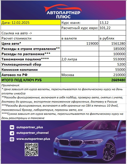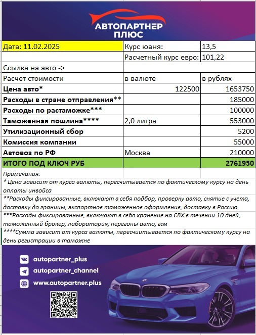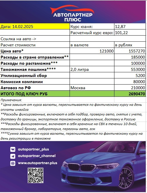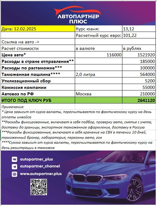 15.03 Получили документы на авто и запланировали автовоз до Москвы - цену предварительно согласовали с клиентом, вышло слегка дешевле, чем в расчете (197.5 тыс. рублей)