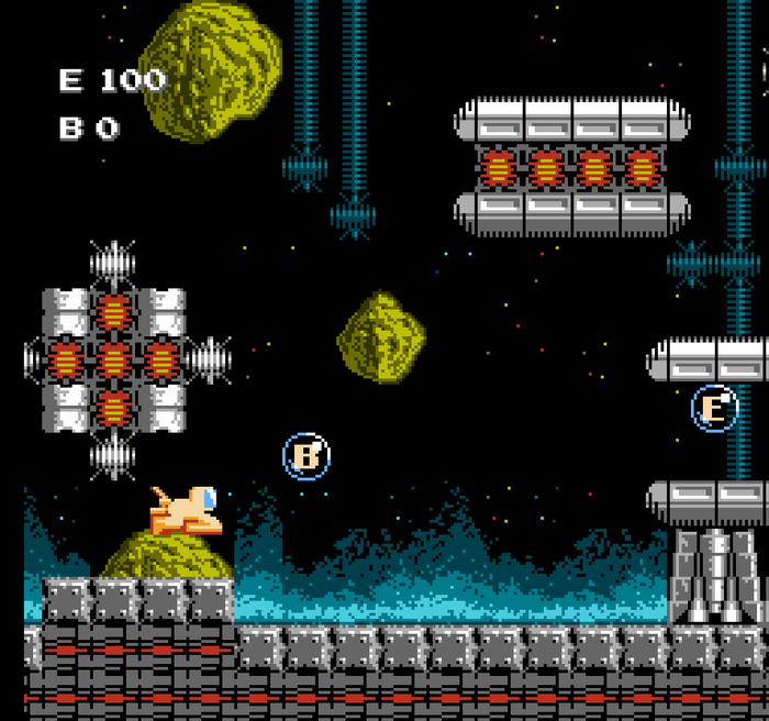 Игра, в целом, сбалансированная - нет задалбывающих мест, нет врагов, спамящих снарядами, от всех снарядов можно увернуться или уничтожить их встречным выстрелом/ударом, хотя "платформинг" местами заставит попотеть - управление немного "скользкое", а при столкновении с врагами вас отбрасывает назад. Есть несколько "прилипающих" врагов: летающая зелёная фигня на втором уровне (она есть на скрине выше, где вход в комнату с бонусами) - она садится вам на голову и съедает жизнь потихоньку, сбросить её можно только ударившись обо что-то головой в прыжке, и все враги в наземной части седьмого уровня - планета Odar - там отцепиться от них можно путём долбления в кнопку прыжка - её надо немало раз нажать, чтобы вас отпустили.