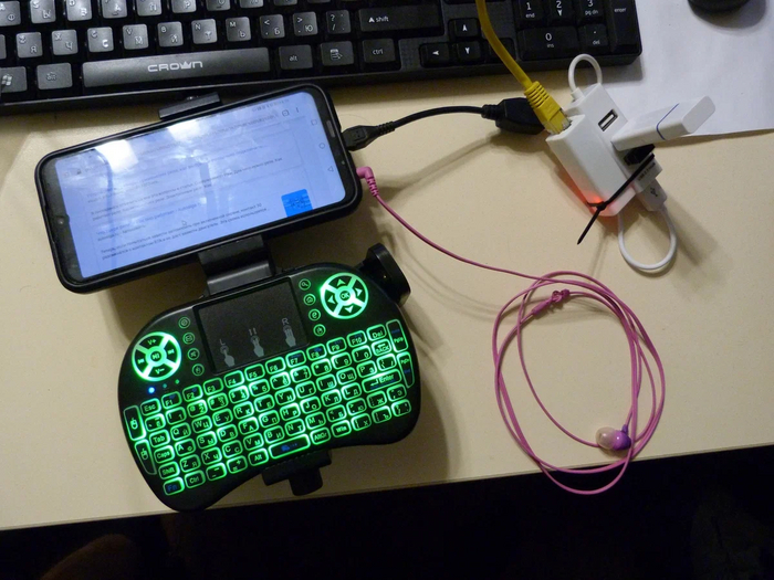 Начнем с того, что есть устройство на линуксе raspberry pi4. И очень хотелось бы сделать его переносным. С клавой все решается достаточно просто - монтированием в корпус к самому устройству или подключив через usb/bt и кладешь куда угодно.