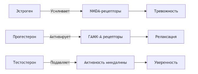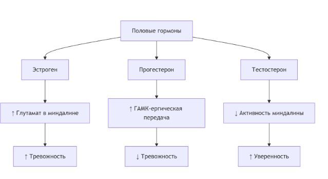 Половые гормоны также играют роль, особенно в чувствительности к тревоге.
