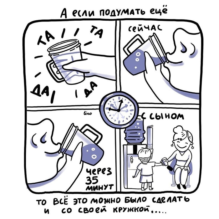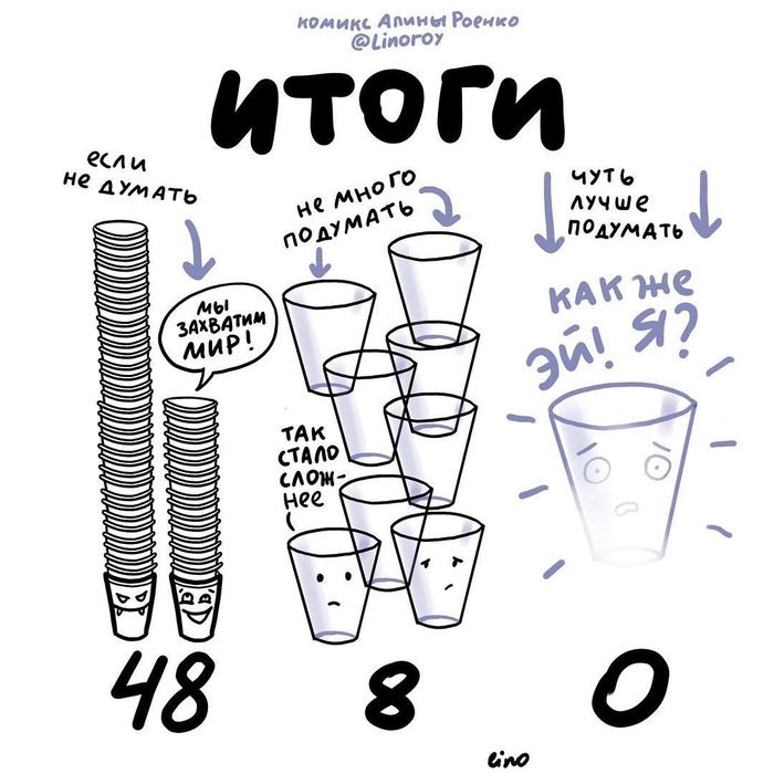 Комикс от иллюстратора Алины Роенко о том, что многоразовое, всегда лучше одноразового.