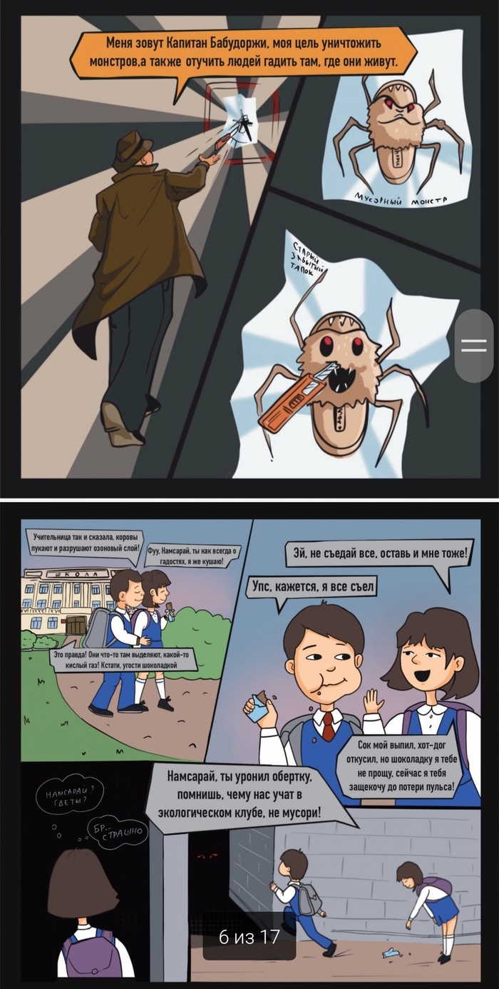 Делимся с вами "зелёными" комиксами от АНО Событие про Капитана полиции Бабудоржи, который борется с мусорными монстрами, захватившими Улан-Удэ.