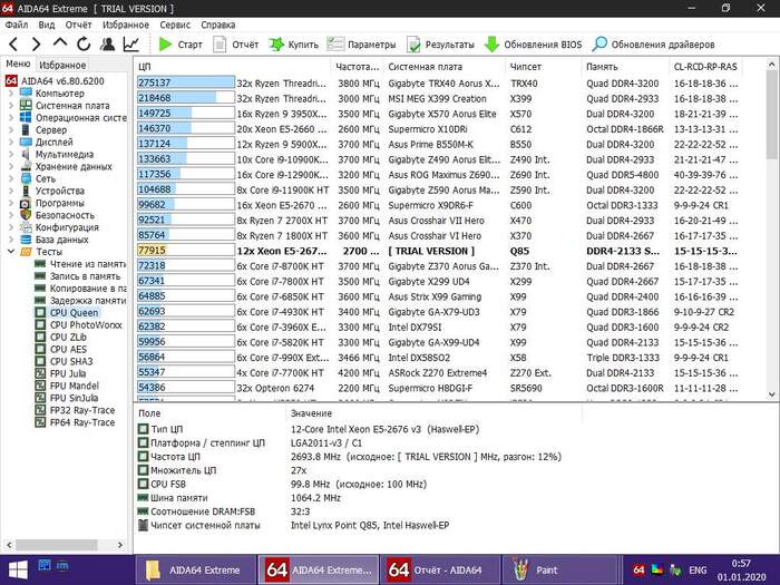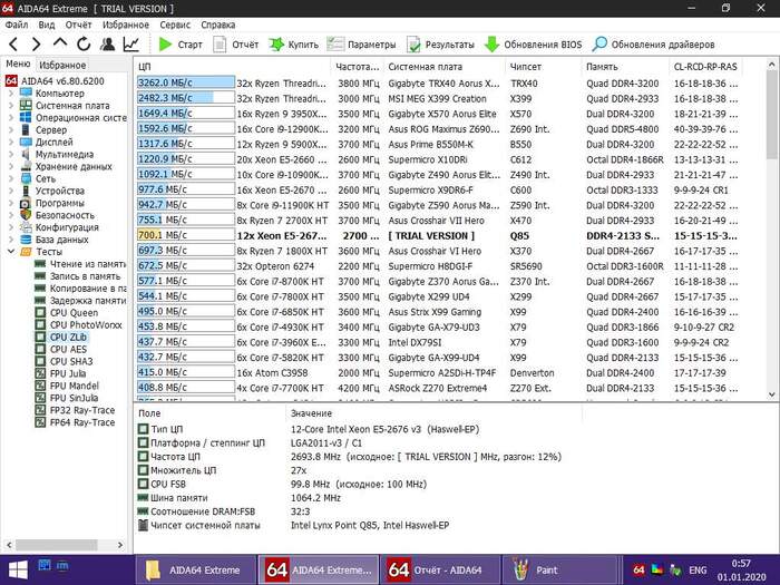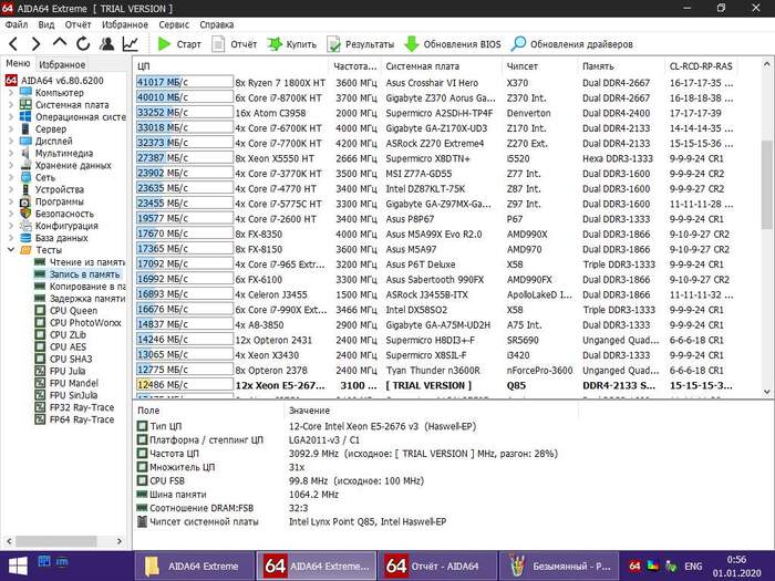 Сборки на xeon 2673 v3 результаты тестов AIDA64