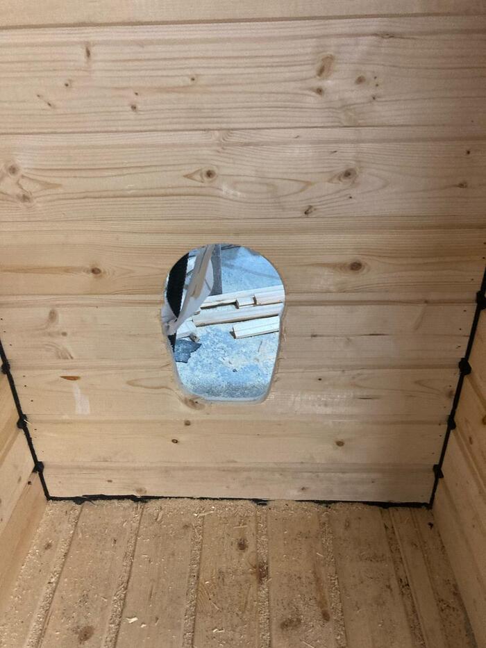 Труба была разрезана на две половины длинами 45 и 55 см. Это позволит разместить банку для сбора конденсата.