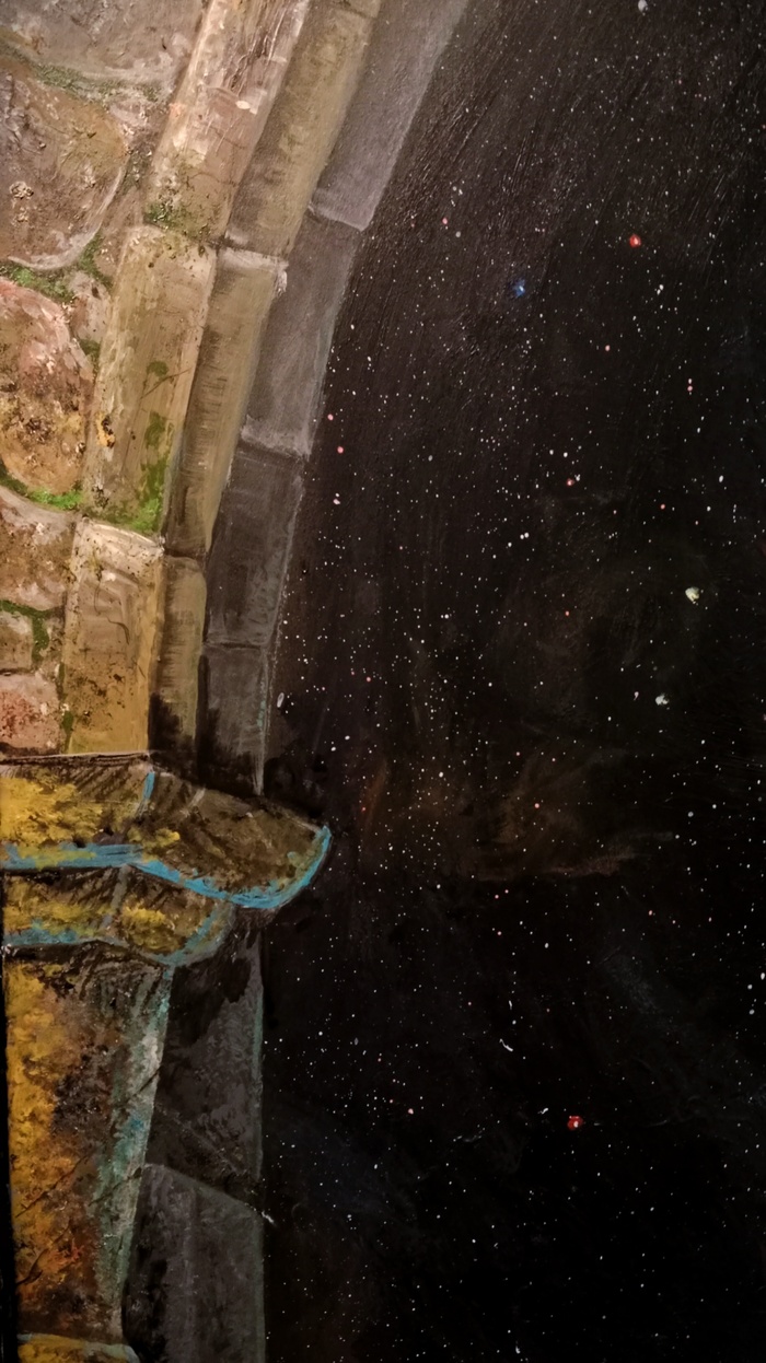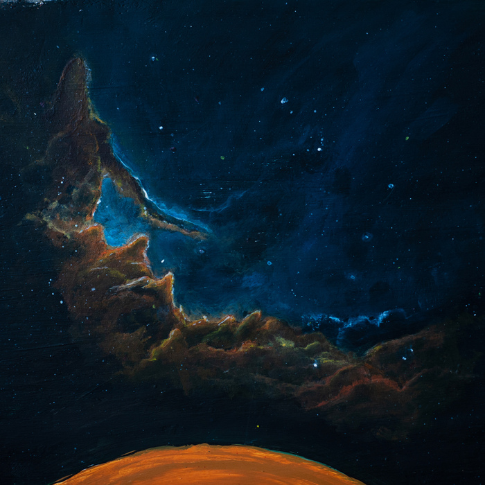Ну и вот, чё-то такое получилось. Лупил акрилом по грунту, пробовал разными техниками космос передать.