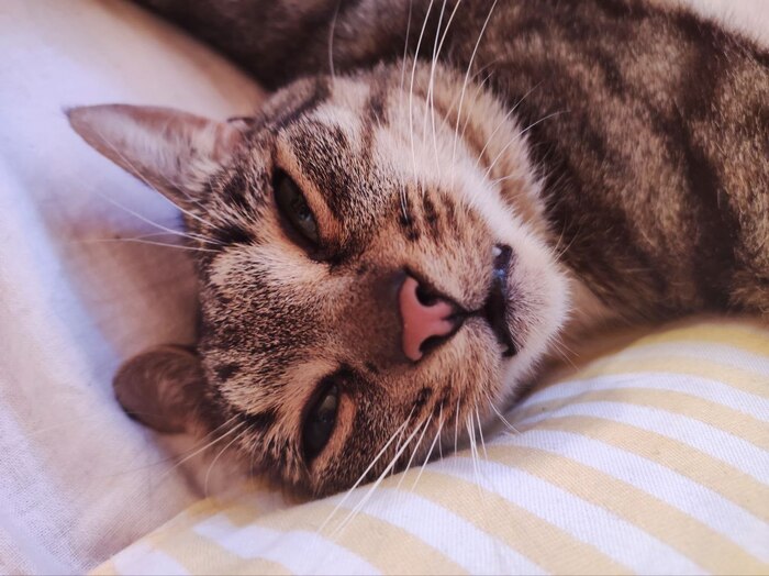 С того дня кот не боялся, приходил, ждал нас у двери. От мужа моего не отходил- ласковый до безобразия! Утром просыпаюсь , открываю глаза- обнимаю кота! Залез ночью обниматься.